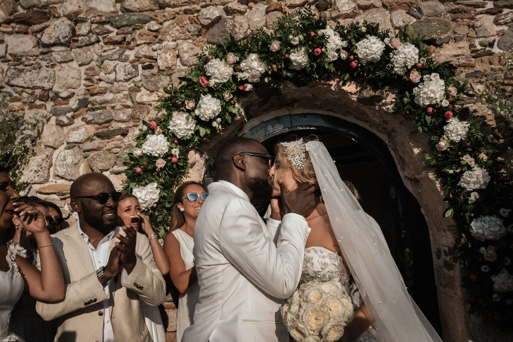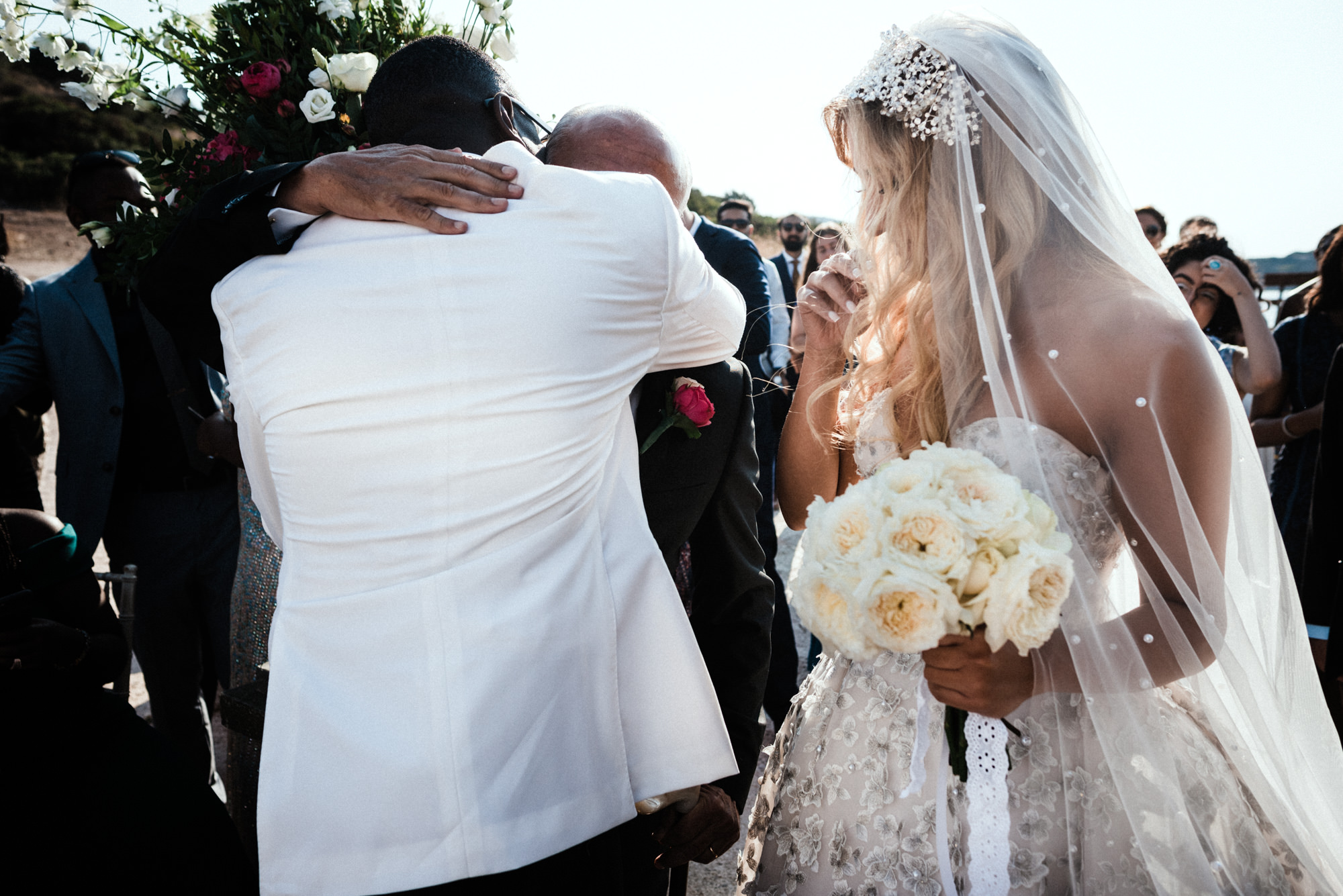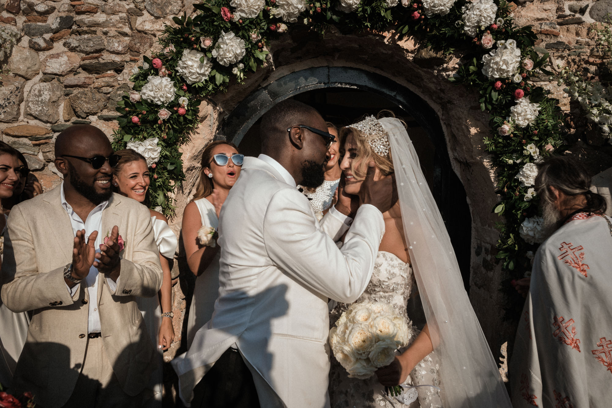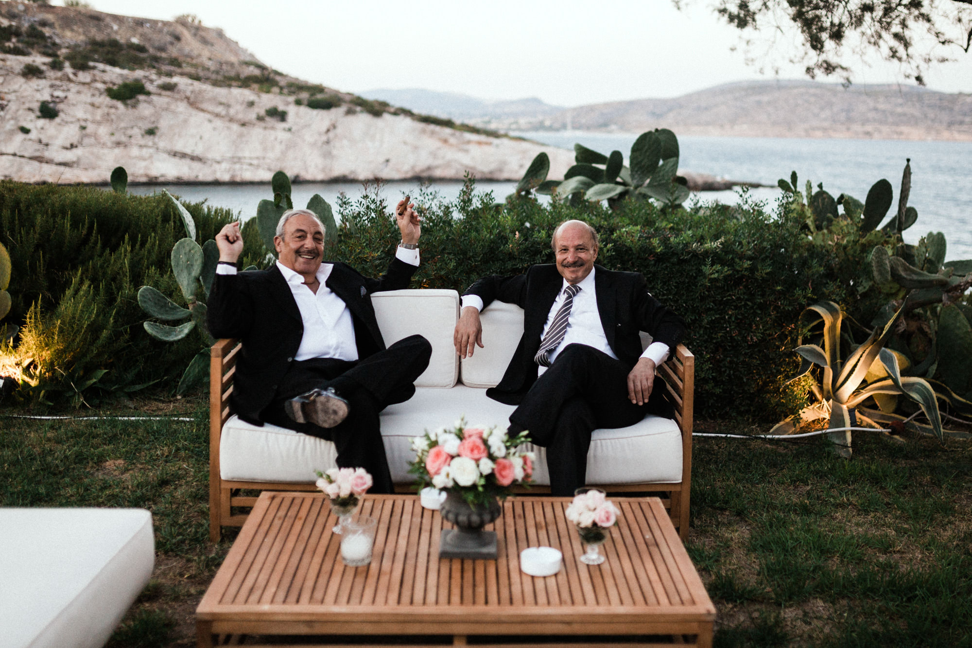 The afternoon Athenian Riviera Orthodox church service in Anavyssos, complemented perfectly the beautiful, colourful dresses of the wedding party. Just perfect. You could just feel the raw emotion, and the love in the air as soon as Hala stepped out of the car, to be escorted by her father to the small stone church where Michael, and his family and friends were waiting.
